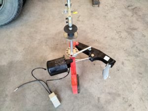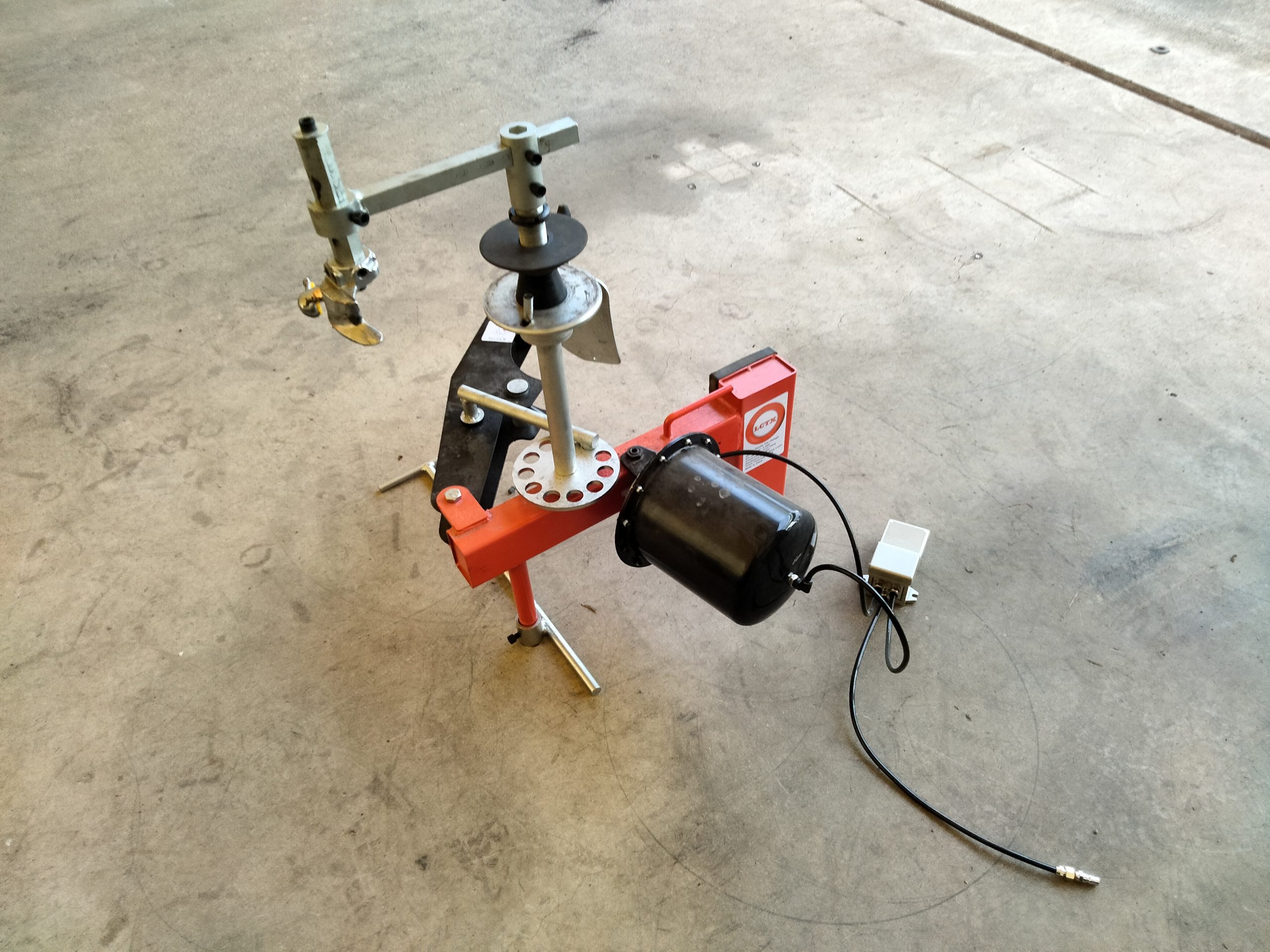 このタイヤチェンジャーの特徴はビードブレーカーの部分にプッシュロッドがついており、ターンテーブルを回す役割をしてくれる所です