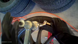上記画像にもあるようにターンテーブルを回す役割をするプッシュロッドの架け替えが2~3回程度必要になりますが意外とスムーズにタイヤの取り外し、組み付けが可能でした。ビード落としが2分程度、タイヤを固定してダックヘッドの調整をしてタイヤをバラすまでが5分程度、ビードクリームを塗ってタイヤの組付けが完了するまでは2分程度でした。ダックヘッドの調整は最初の1本だけで済むので2本目以降はさらに時間短縮となるでしょう。もちろんホイールに傷がつくこともありません。ダックヘッドの調整には少し慣れが必要ですが使用感は据え置きのタイヤチェンジャーに近いと思います